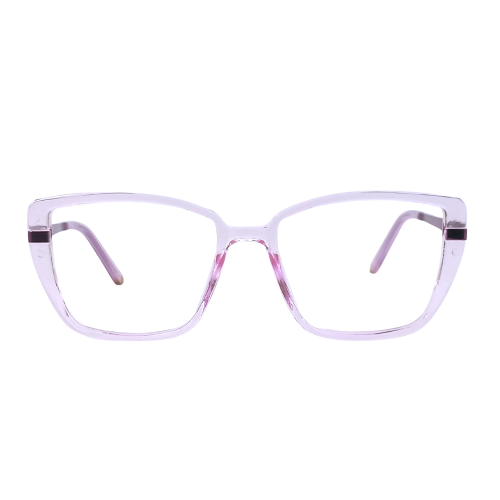 Mix these eyeglasses with monochrome tops to let the colors pop or with gold and plum accessories for a coordinated look. Their clear-pink and plum palette works beautifully with soft makeup and sleek hairstyles, offering both casual and dressy versatility.